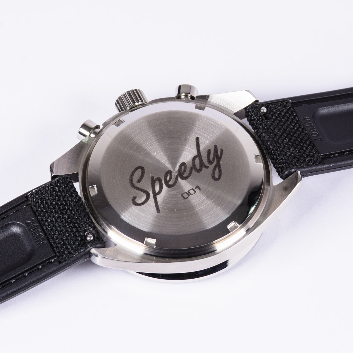 - Stainless steel Caseback with laser-engraved Speedy text and serial number (001 only as a reference)
