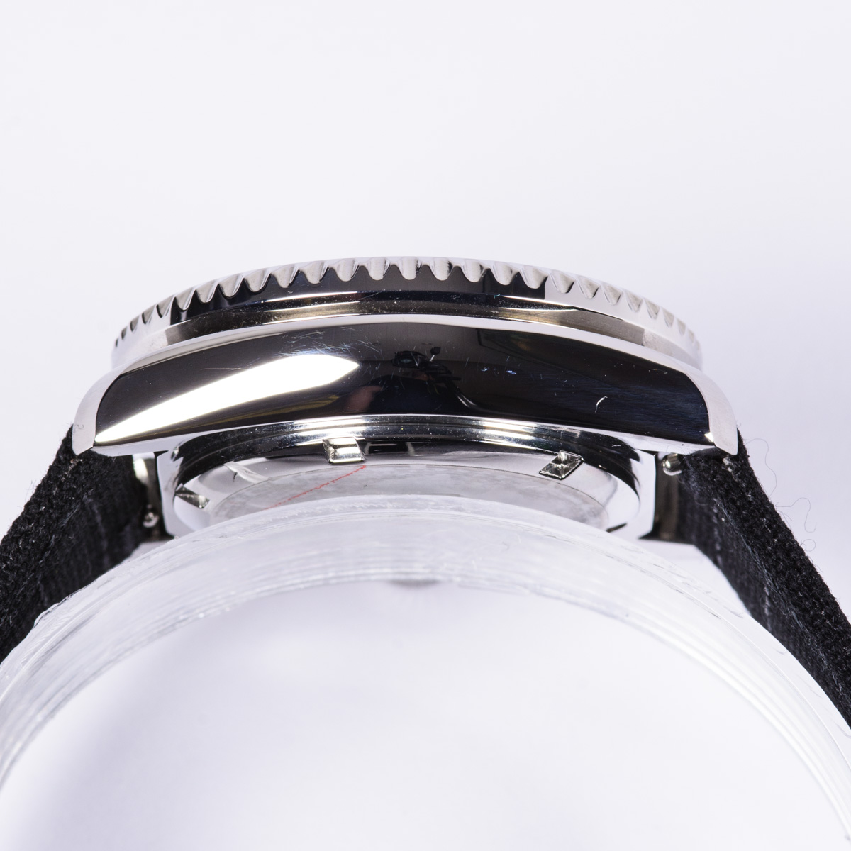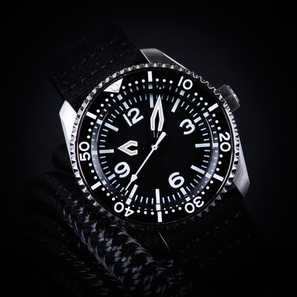 Combining the rugged strength of a diver’s case with the sharp legibility of a pilot’s dial.