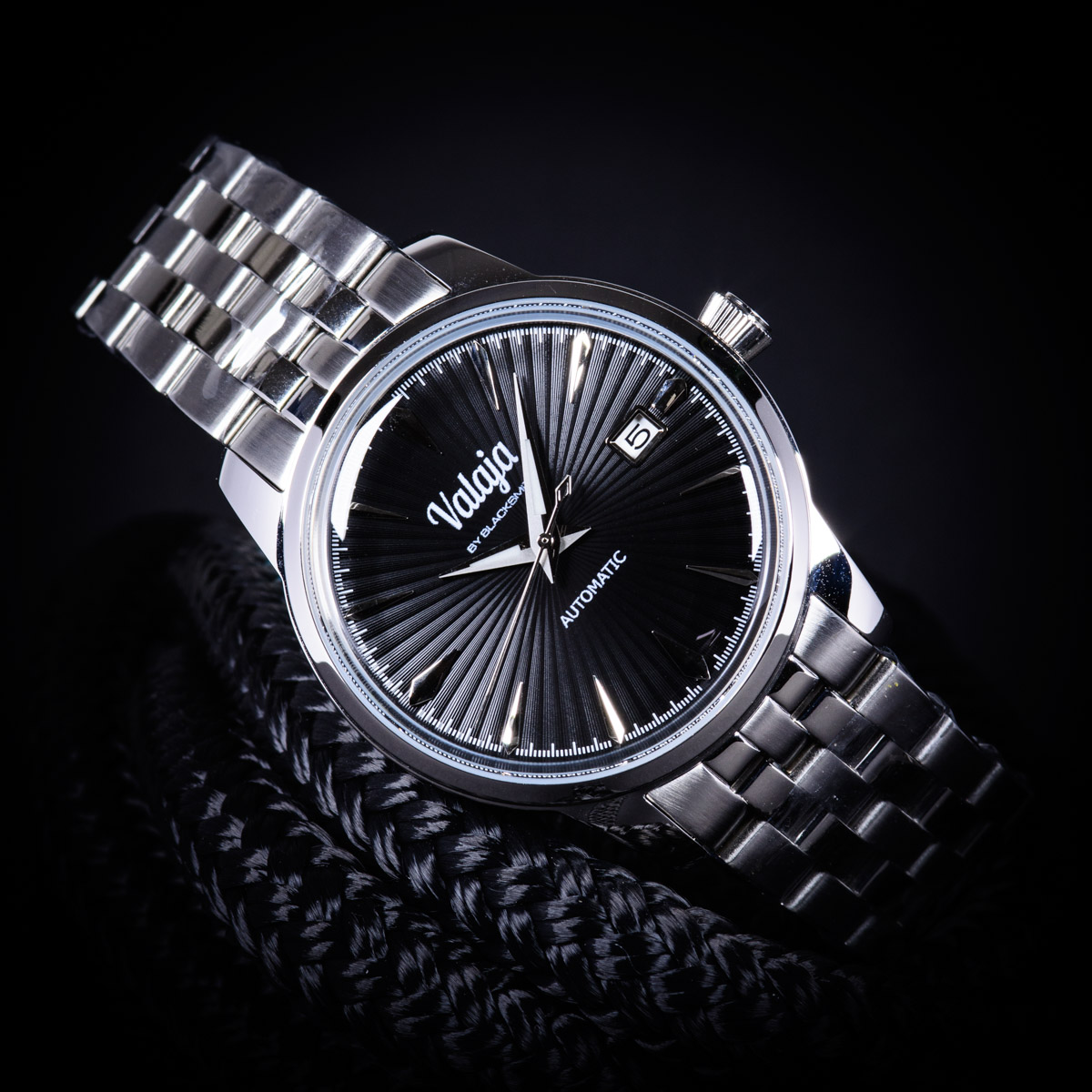 - Black sunburst dial