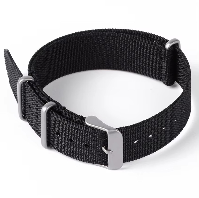 NOTE: The black 20mm NATO straps currently in stock have brushed metal parts, not blasted as shown in the photo.