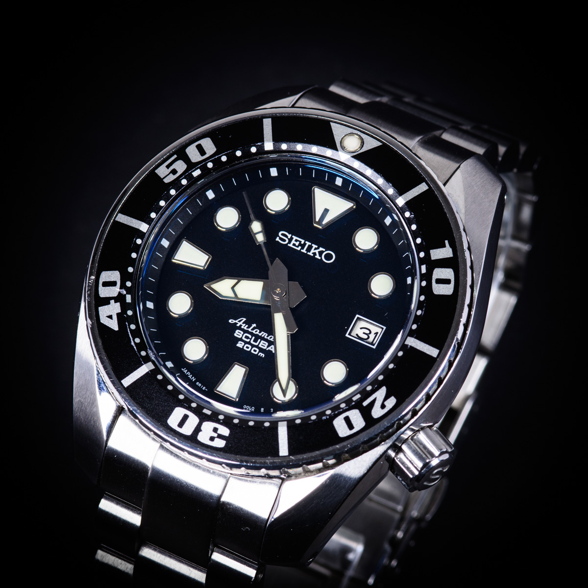 PRE-OWNED: Seiko Sumo SBDC001, the 1st generation Sumo with Scuba dial instead of the X logo. Sapphire Crystal, upgraded Seiko 6R35 movement and Miltat Endmill bracelet.
