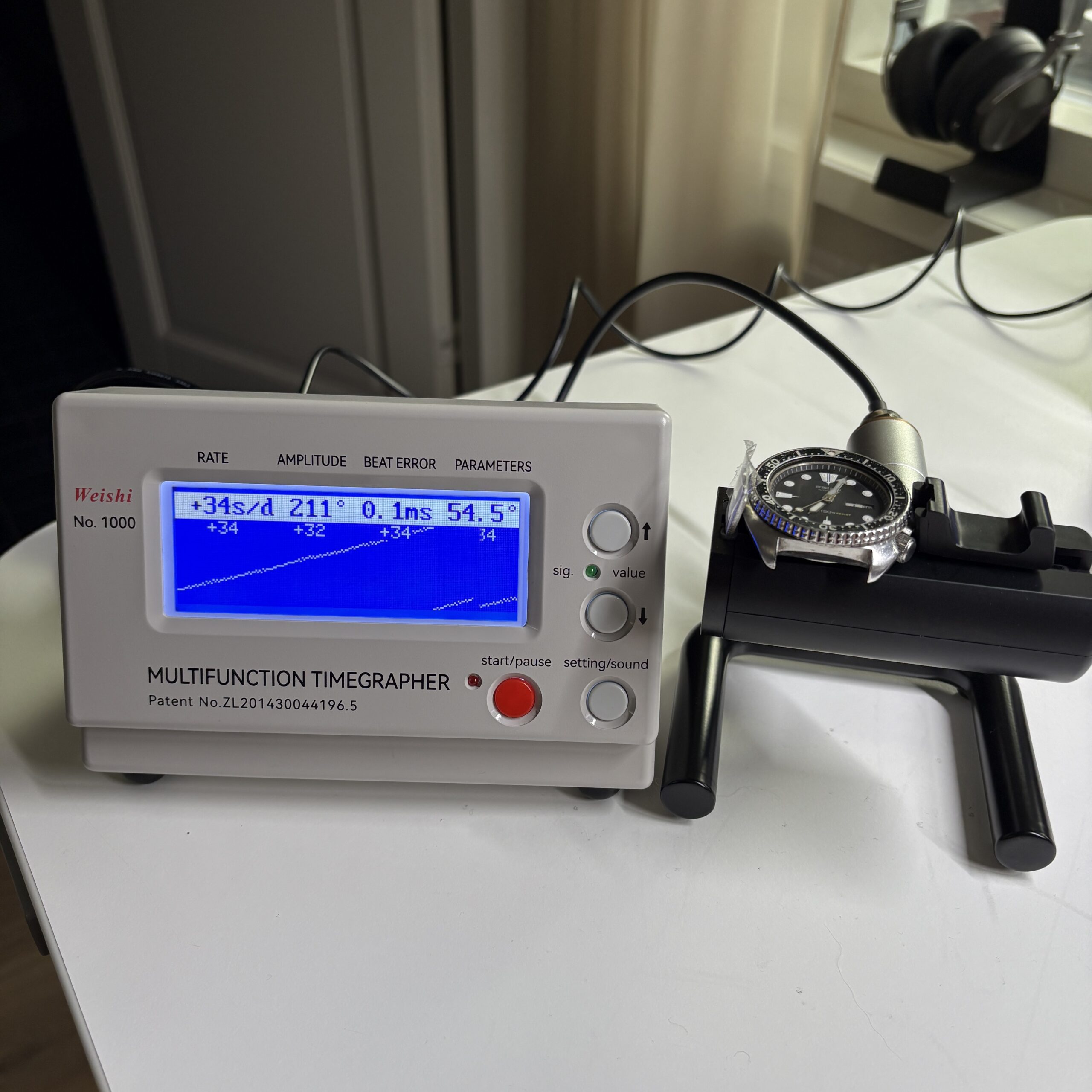 – On the timegrapher (see picture) the watch runs a bit fast but beat error is minimal. After a 5-minute Seiko shake, amplitude climbed up to 210-220 degrees which in my opinion is not bad for a watch like this with no known service history.