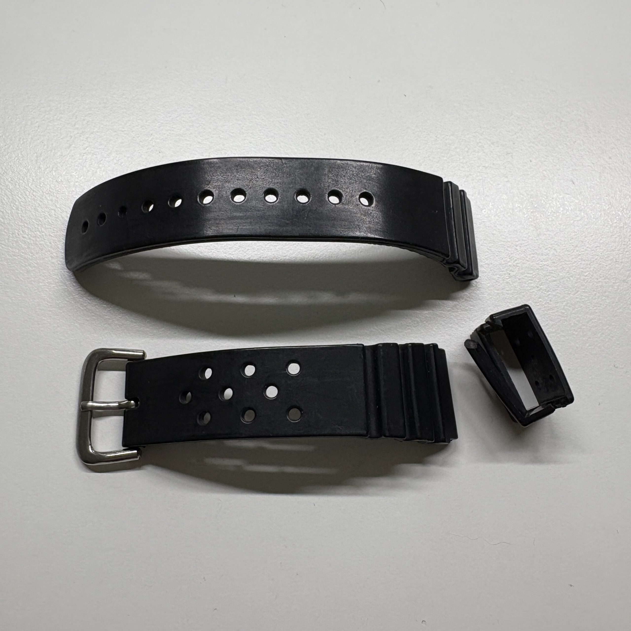 – Comes with an unused olive green paranato strap. Presumably original rubber strap included (keeper broken).